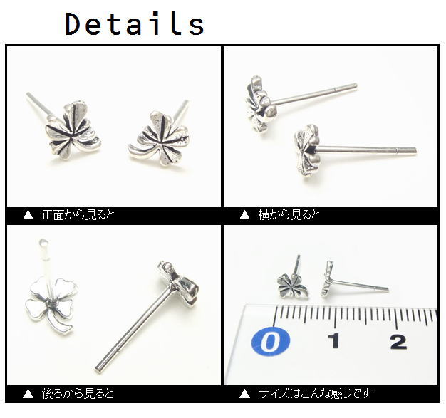素材シルバー925サイズモチーフサイズ:約5x5.5mmポスト長さ:約10mm 個数ペアー売り(1組2個セット)耳にやさしいシリコンゴムキャッチ付き特徴小さなクローバーのピアスは、可愛らしさ十分!これからの季節、心をハッピーにしてくれそうなピアスです。