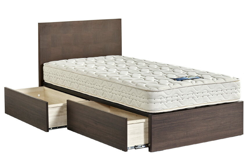 ドリームベッド センシスト2003 ダブル フラット ドロアータイプ・引き出し 厚いマット対応 日本製 ウォールナット風ダークブラウン 送料無料 マットレス付き