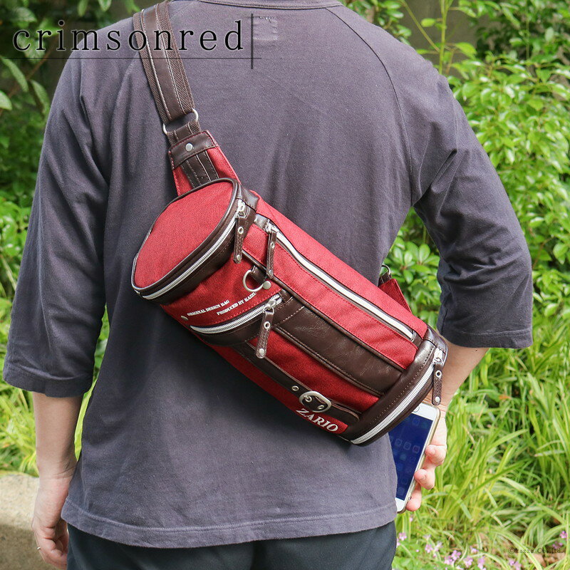 商品カテゴリ:【ブルー】【青】【ブラウン】【茶】【ワインレッド】【赤】【ブラック】【黒】【クリムゾンレッド】【アーバングレー】【アズールブルー】【シミラーブラック】ボディバッグ メンズ フロントラインシリーズ 大容量 おしゃれ フェイクレザー 杢調ナイロン 筒形 軽量 男性用 ブランド ZARIO ザリオ タウンユース