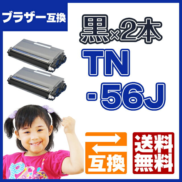 【送料無料】 TN-56J ブラック TN-53Jの増量版 2個セット<日本製パウダー使用>ブラザー互換 HL-5440D/HL-5450DN/HL6180DW/MFC-8520DN/MFC-8950DW用【互換トナーカートリッジ】【宅配便商品・あす楽】