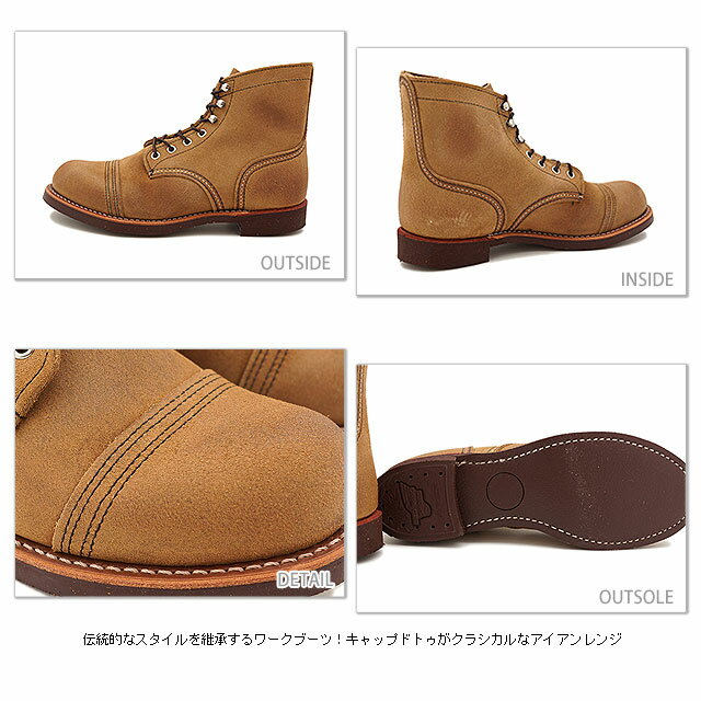 商品情報 [ ブランド ] レッドウィング RED WING [ ジャンル ] ワークブーツ [ 素 材 ] アッパー:ミュールスキナー ラフアウトレザー※ 製法:オールアラウンド グッドイヤーウェルト ソール:ニトリルコルクソール 【キャップドトゥがクラシカルなアイアンレンジ】 1905年、アメリカミネソタ州のレッドウィングという小さな町に一軒の靴工場が誕生する。